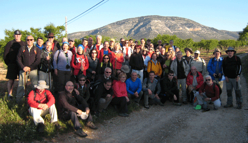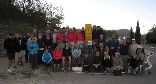 A las 08_15 horas, los 60 peregrinos ya están preparados para la habitual foto de grupo y seguidamente comenzaron a dar los primeros pasos para hacer los 5,5 km de carretera nacional hasta la Capilla de la Virgen de la Bota, puerta de entrada al barranco homónimo.