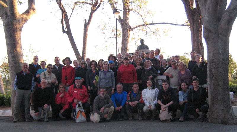 08:00: El grupo de 53 peregrinos posa junto al mojón Km "0"